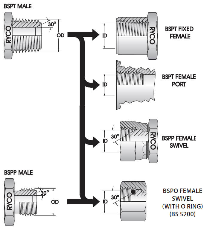 BSPP – BRITISH STANDARD PIPE PARALLEL – Thread form per as 1722.2, ISO 228 (THREAD TYPE), ISO 1179